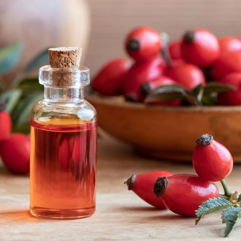 Rosehip oil is rich in antioxidants, vitamins, and essential fatty acids, offering hydration, brightening, and skin regeneration benefits. It helps to improve skin texture, reduce the appearance of scars and wrinkles, and promote a more radiant complexion.